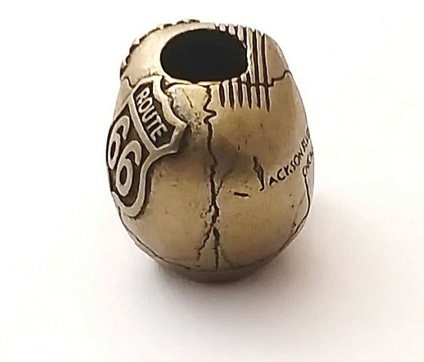 Velice kvalitně vypracovaný ozdobný korálek v podobě lebky. Jedná se o motorkářský symbol slavné cesty Route 66