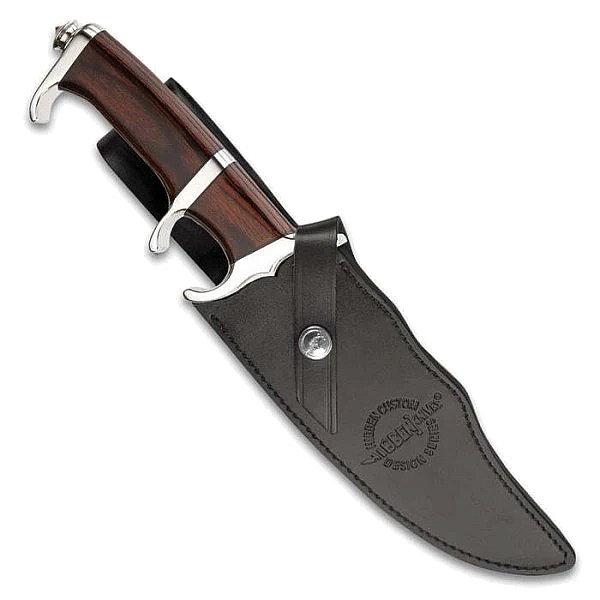 Pěkný bojový nůž, který využijete i při běžných aktivitách jakými jsou kempování a lehká turistika. Čepel z nerezové ocele 5Cr15MoV má dutý výbrus a výrazné břicho, díky čemuž skvěle řeže. Krásný design doplňuje rukojeť ze dřeva darkwood, které má krásnou kresbu, a nerezová záštita a hlavice.