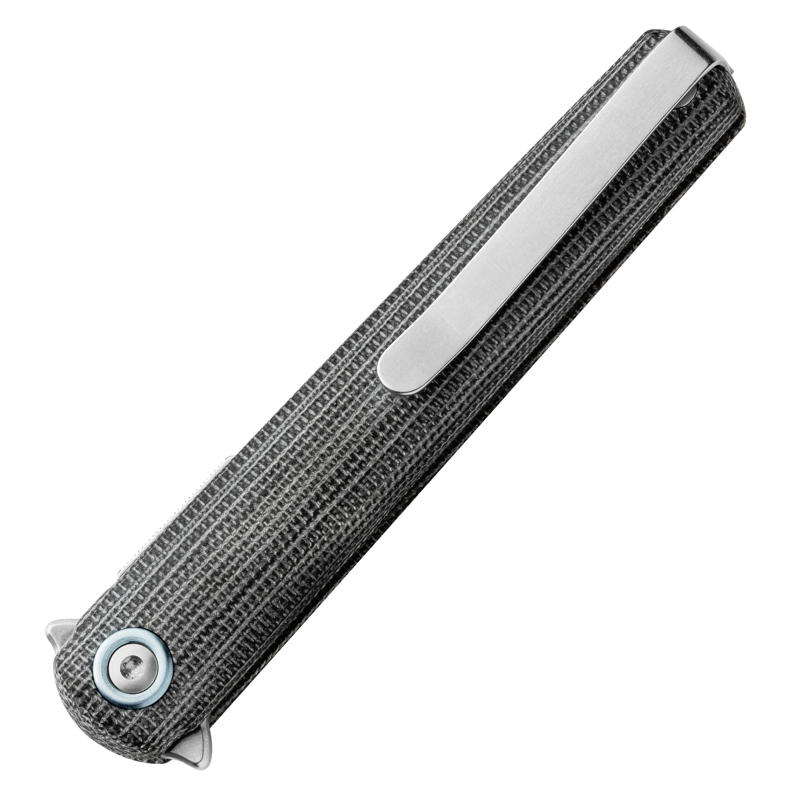 Lehký a štíhlý kapesní zavírací nůž pro každodenní nošení. Čepel je vyrobena z vysoce kvalitní práškové nerezové ocele Bohler M390 a má tvar dýky. Střenky z tmavé micarty jsou krásné na pohled a dodávají noži jistý punc luxusu.