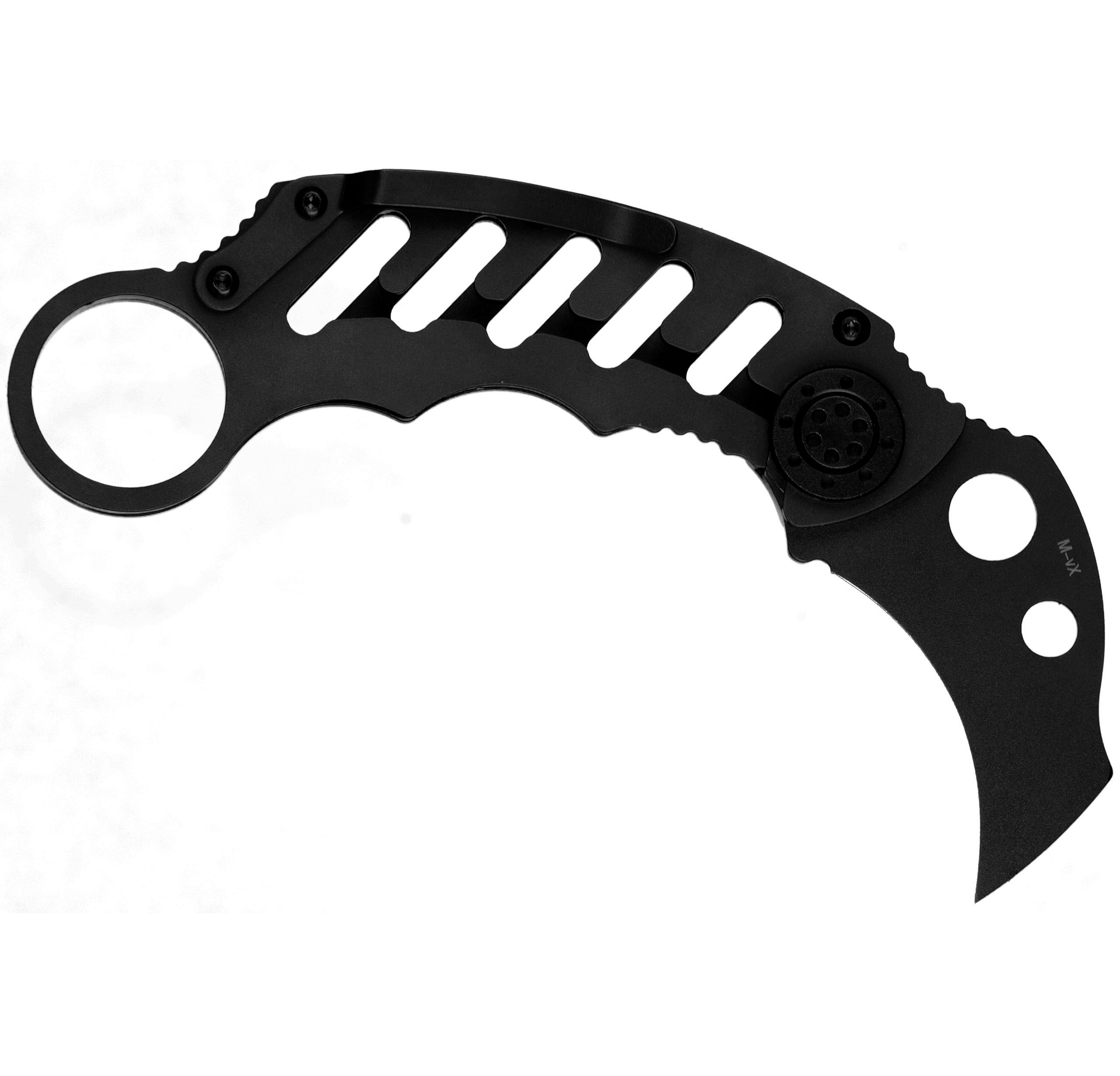 Malý zavírací karambit vhodný obzvláště pro ženy či muže s menší dlaní. Zavírací nůž s menší čepelí výborný nejen k sebeobraně, ale díky výrazně zahnuté čepeli i k otevírání balíků a řezání fólií. Konstrukce je sice odlehčená ale nůž je celokovový a relativně těžký.