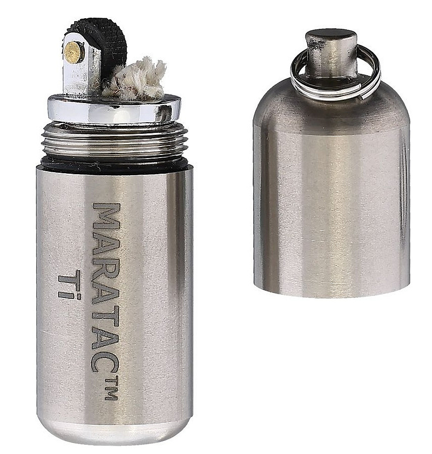 Kompaktní nouzový zapalovač na benzín, který můžete mít stále při sobě zavěšený na klíčích nebo třeba zipu vašeho oblíbeného turistického batohu. Díky vnější konstrukci z titanu je velmi odolný a po vyjmutí mosazného insertu jej můžete využít třeba jako vodotěsnou schránku na tablety nebo troud. V balení naleznete náhradní kamínky, těsnící O-kroužky a kovový kroužek na zavěšení. Zapalovač je dodáván bez benzínu.