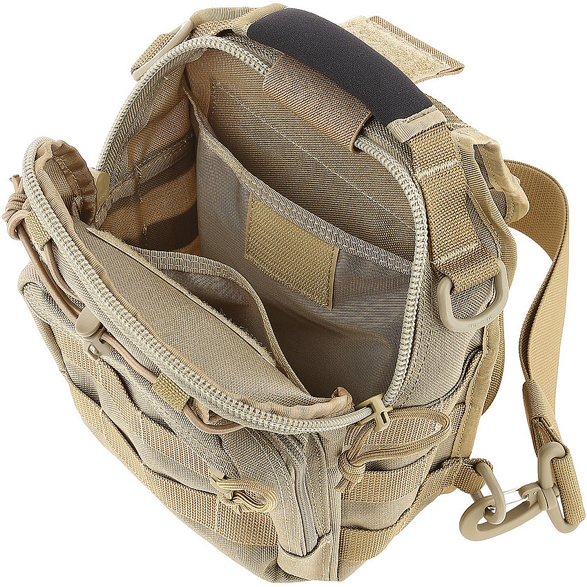 Molle Popruhy na přední kapse na bocích a Gurtansatz poskytují dostatek příležitostí pro rozšíření. Povrch je vyroben z oděru-odolného nylonu a uzavřené buňky pěny poskytují pohodlí a prodyšnost.