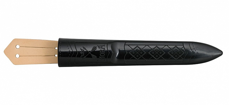 černé pouzdro z polymeru s koženým poutkem na pásek