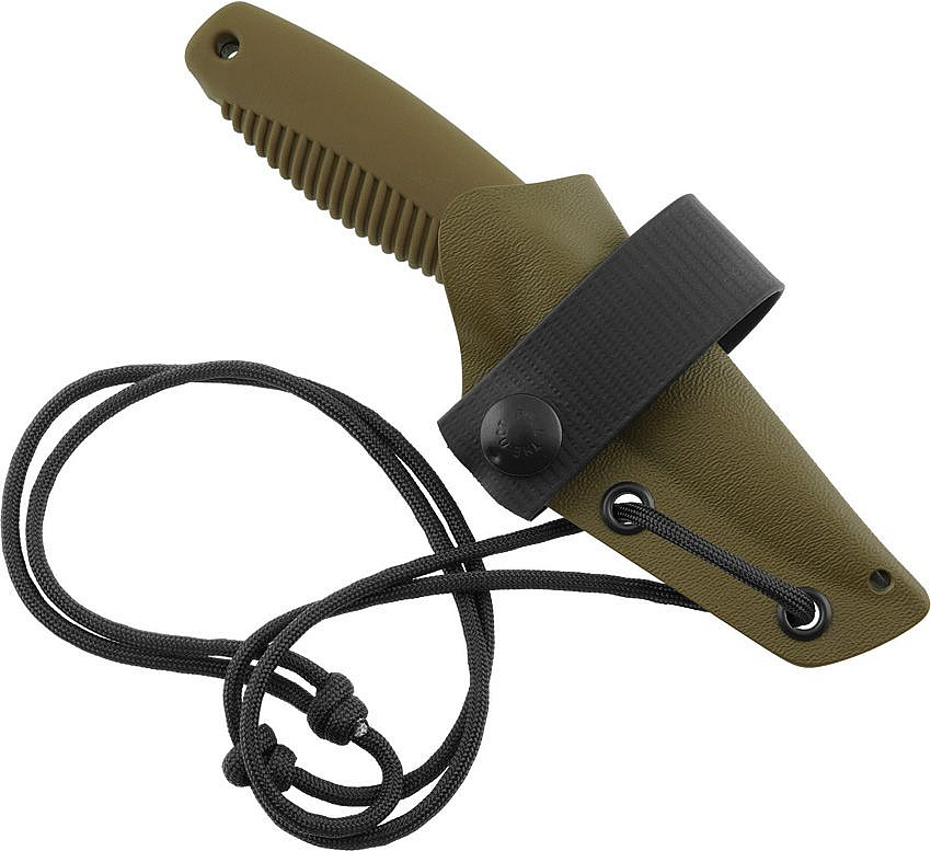 - Pouzdro: kydexové s opaskovým průvlekem a šňůrou na krk, coyote
