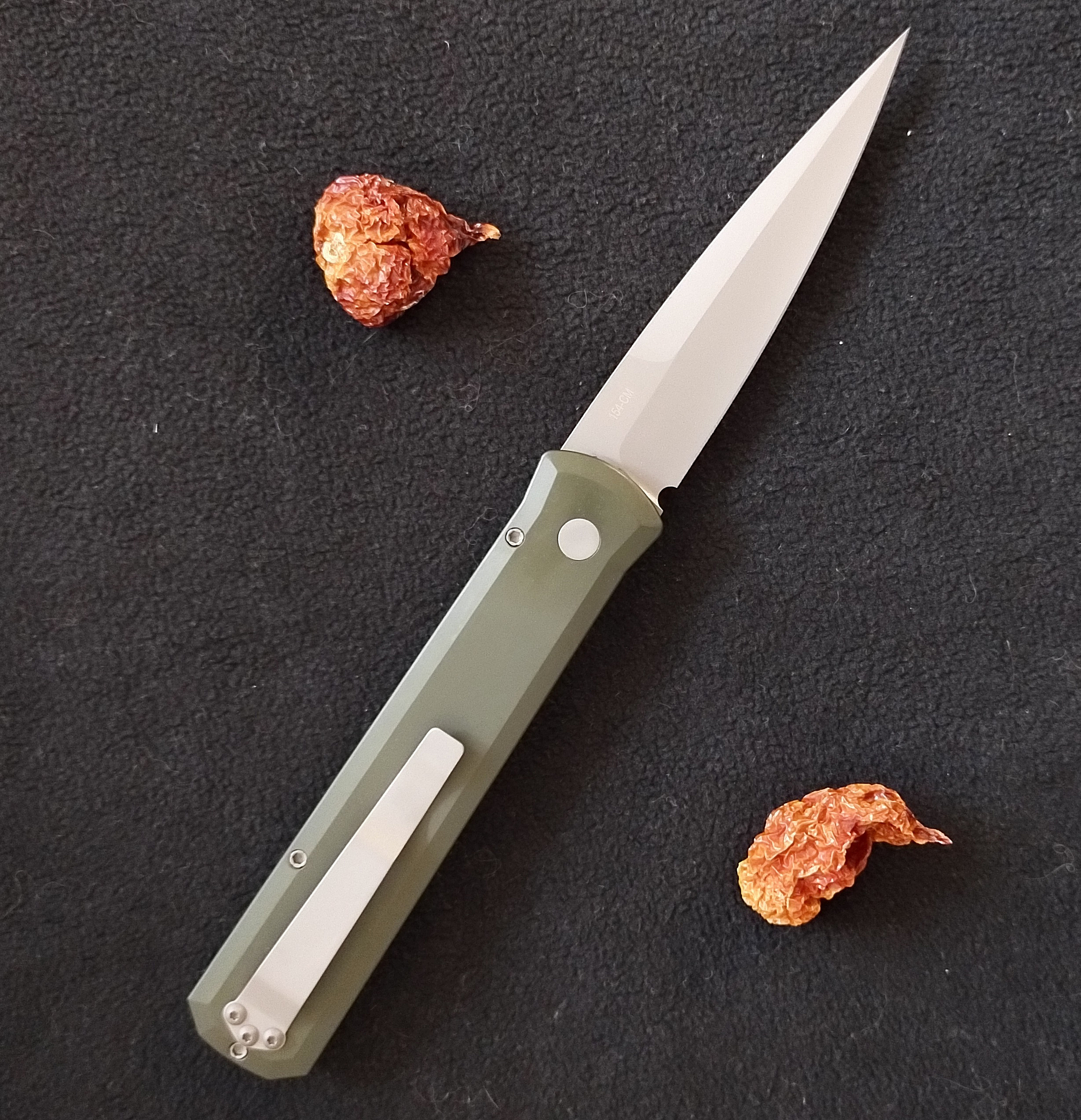 Pro-Tech Godfather Green Bead Blast Plain Blade