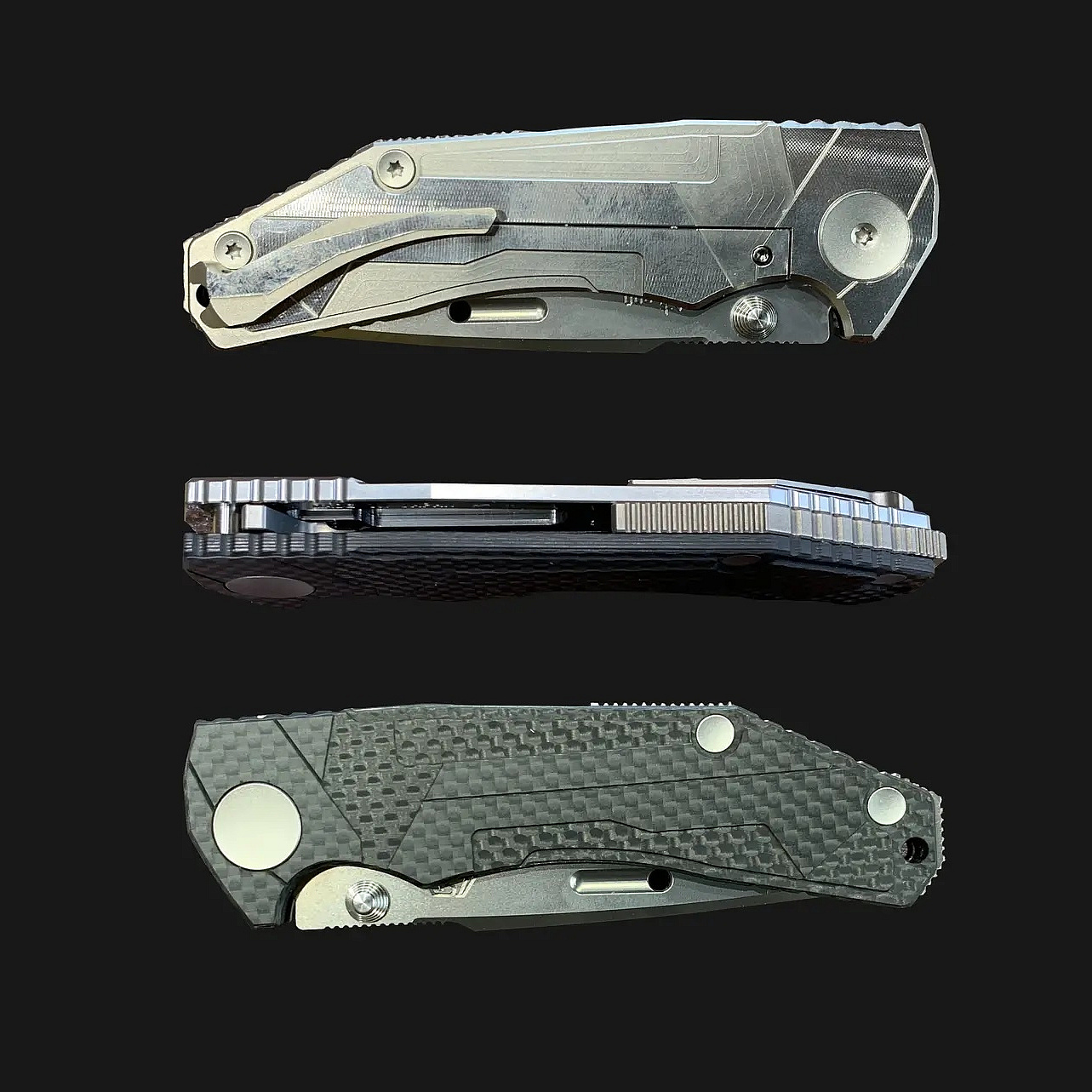 - střenka z anodizovaného titanu a z uhlíkových vláken - karbonu