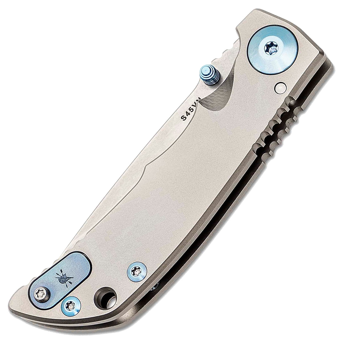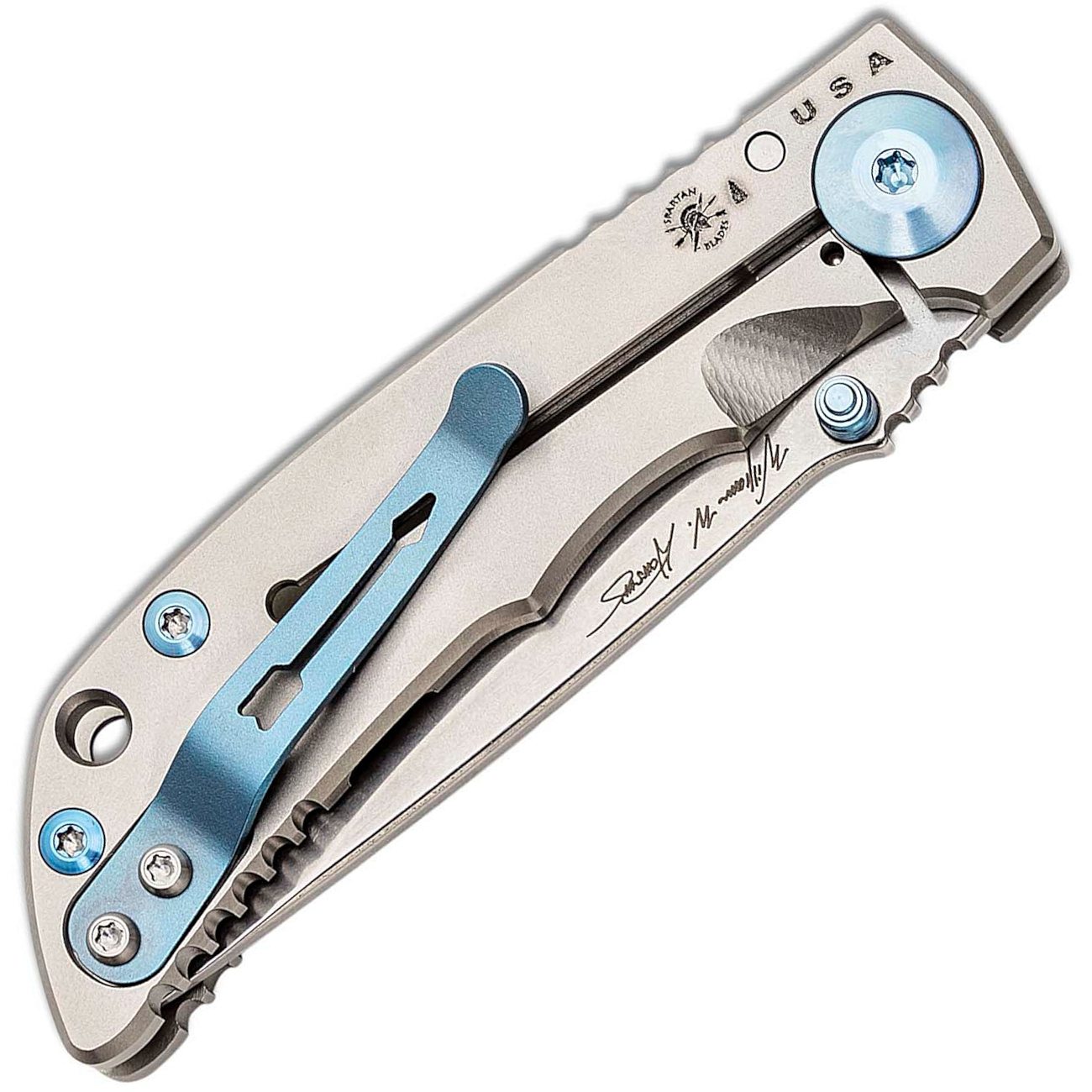 Tento nůž zaujme na první pohled charakteristickým designem od pana Harseyho. Jeho přednosti tkví v čepeli z prvotřídní práškové nerezové oceli S45VN a rámu z titanu. To vše noži propujčuje odolnost a skvělé řezné vlastnosti. Navíc je čepel ve velmi populární povrchové úpravě stonewash. Nůž má menší rozměry, takže se skvěle hodí jako elegantní módní doplněk do saka i dámské kabelky.