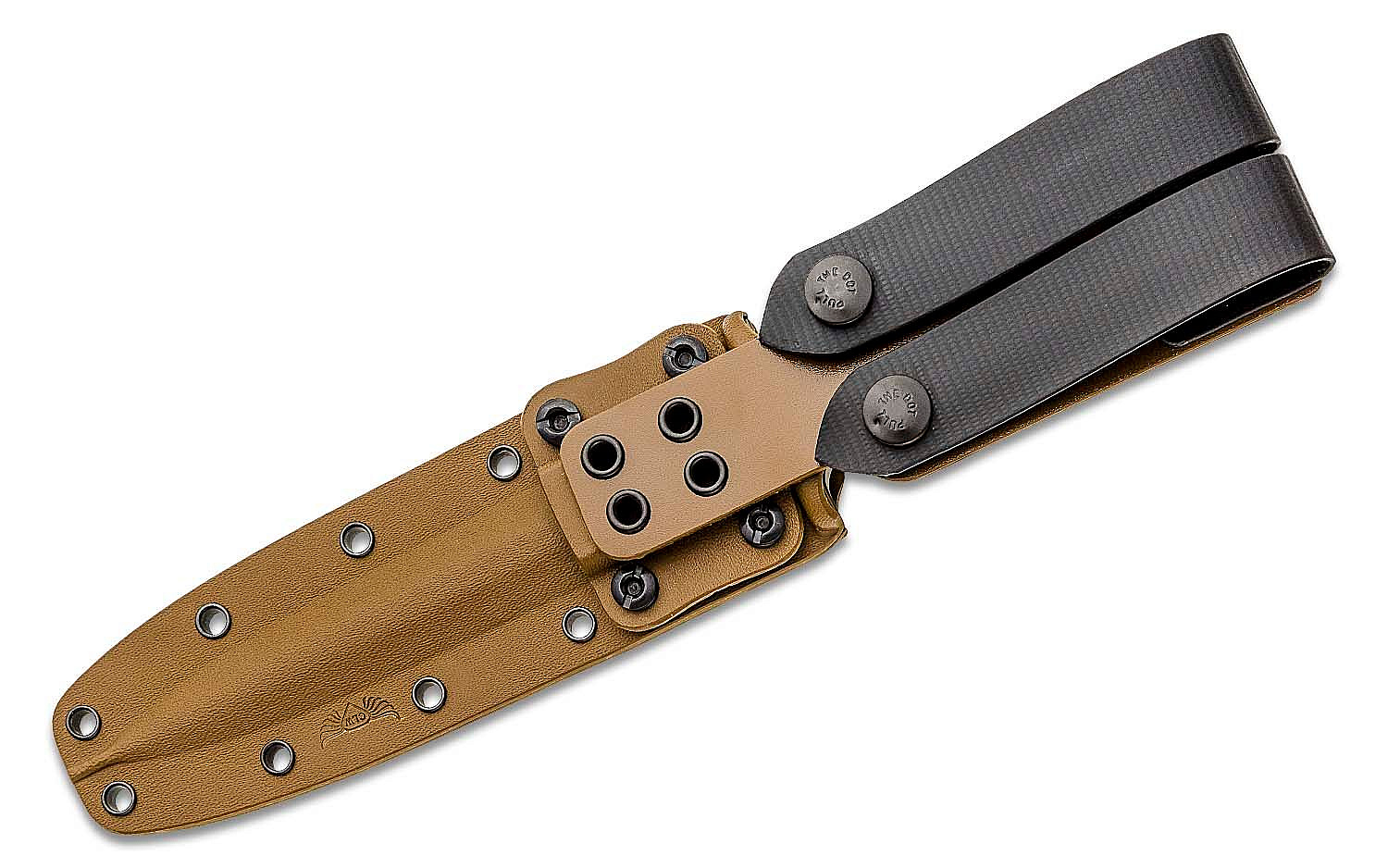 - Pouzdro: kydexové pouzdro s polymerovým MOLLE nosným systémem (použitelný jako opaskový průvlek)