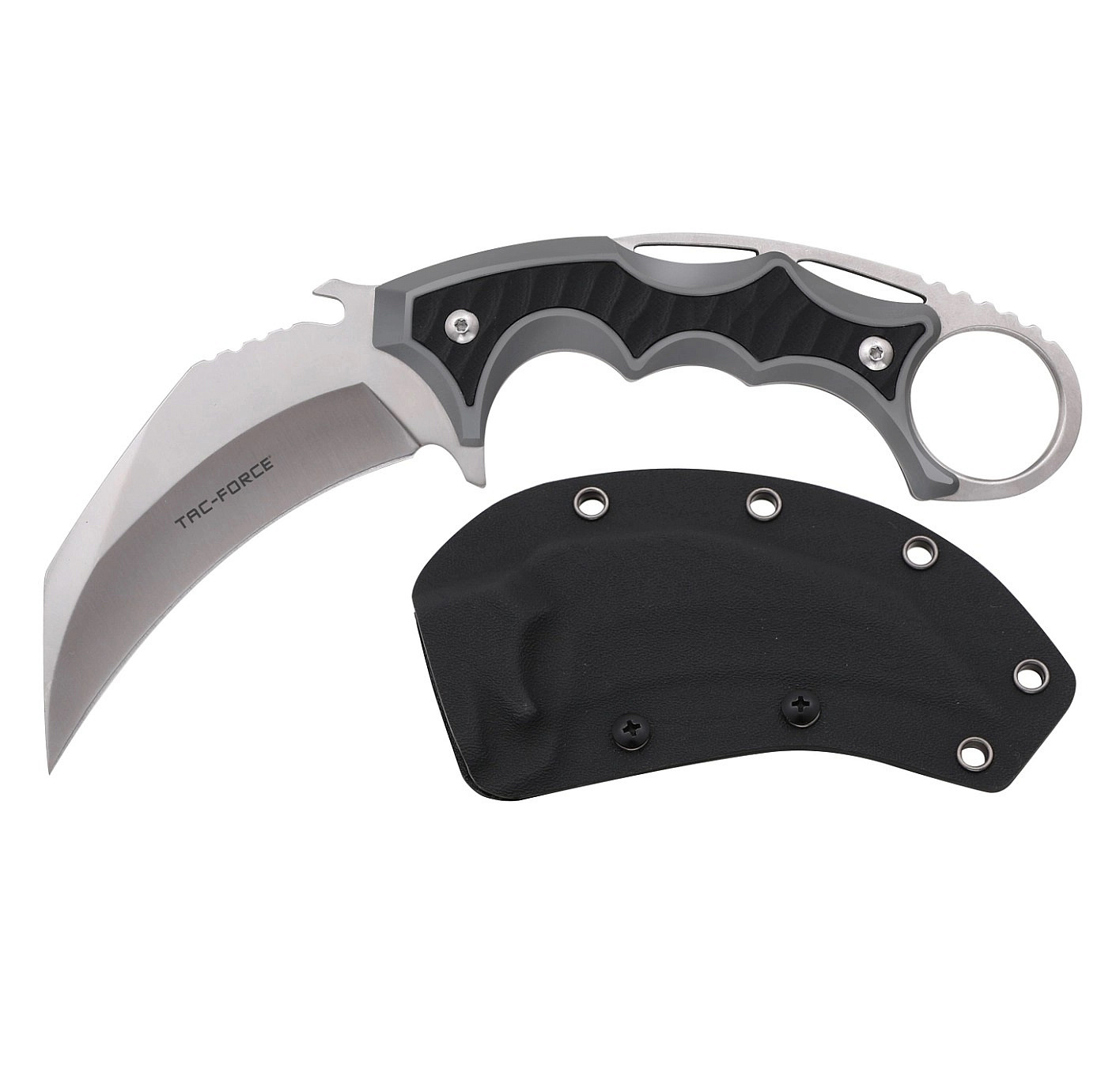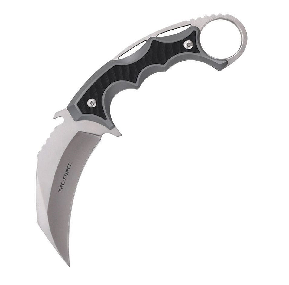 Tac-Force Brachial Karambit je větším karambitem se solidní ergonomií a velice dobrým vyvážením. Díky polymerovému pouzdru se samosvorem jej lze snadno skrytě nosit pro případ sebeobrany nebo na vojenském opasku, jako taktický nůž.