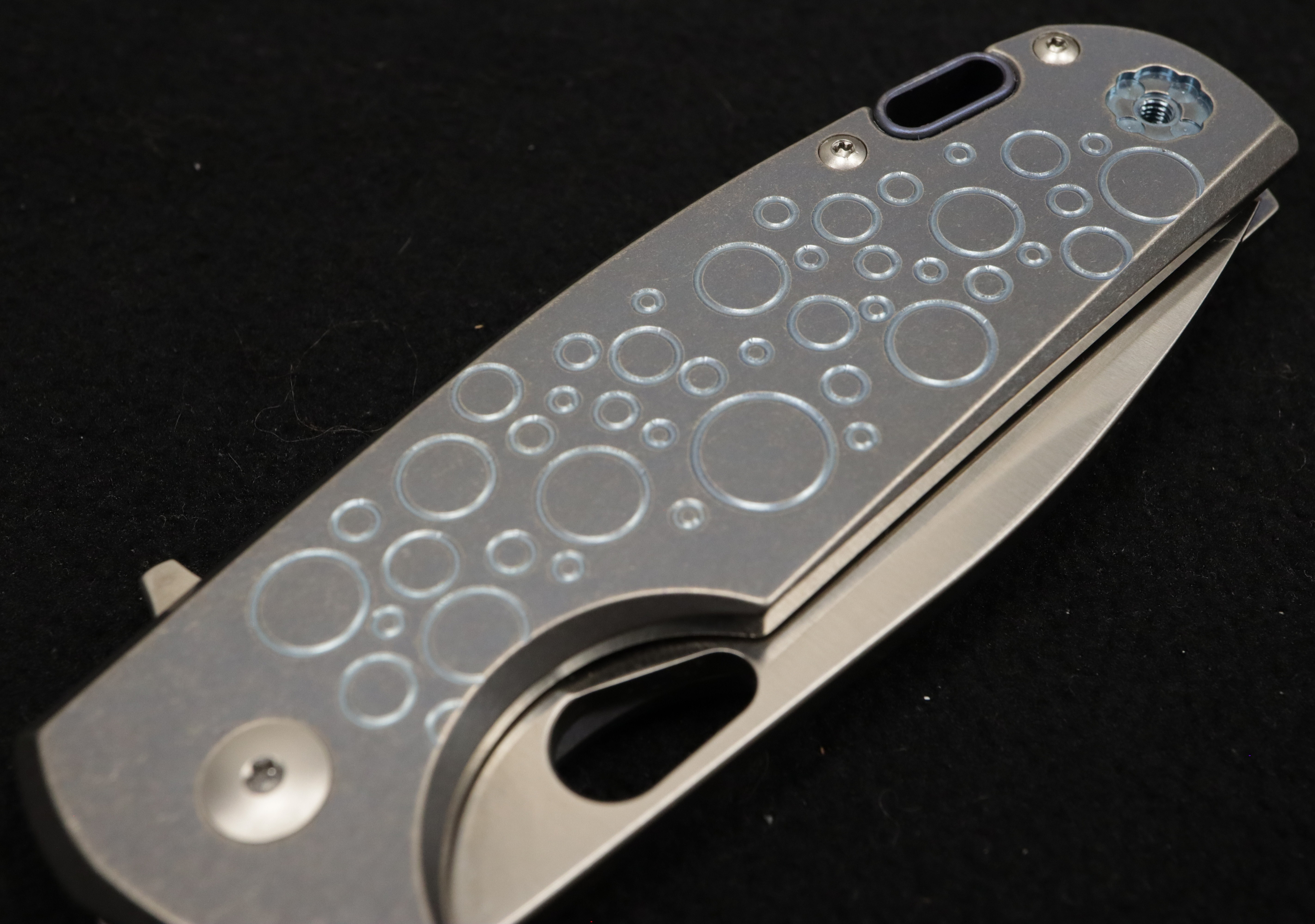 Limitovaná 150 kusová edice s vkusně zdobenou střenkou hlubokým frézováním a elektrolitickým barvením titanové slitiny. Navíc je čepel vyrobena z moderní vysokojakostní práškové oceli