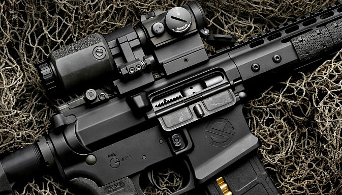 Montáž pro zvětčovací modul. Umožňuje rychle odklopeni nebo zaklopení modulu a to jen přes odpor aretační pružiny. Pokud chcete rychle zvětšovací modul z pušky sundat, po stiknuti pojistky odpojíte výklopnou část od základny montáže.