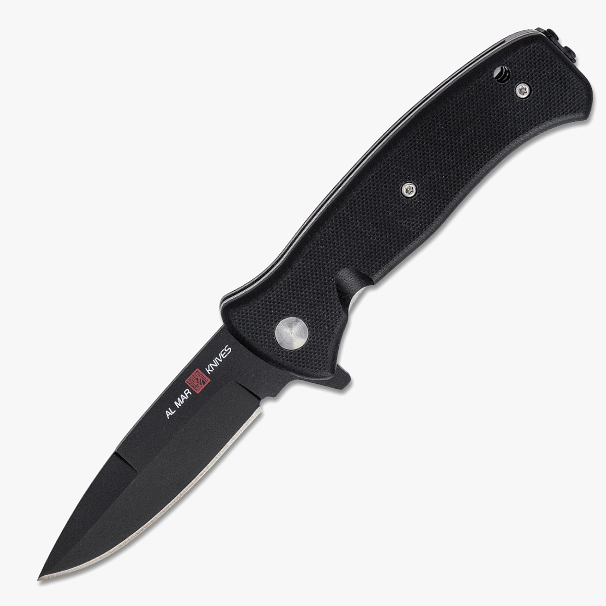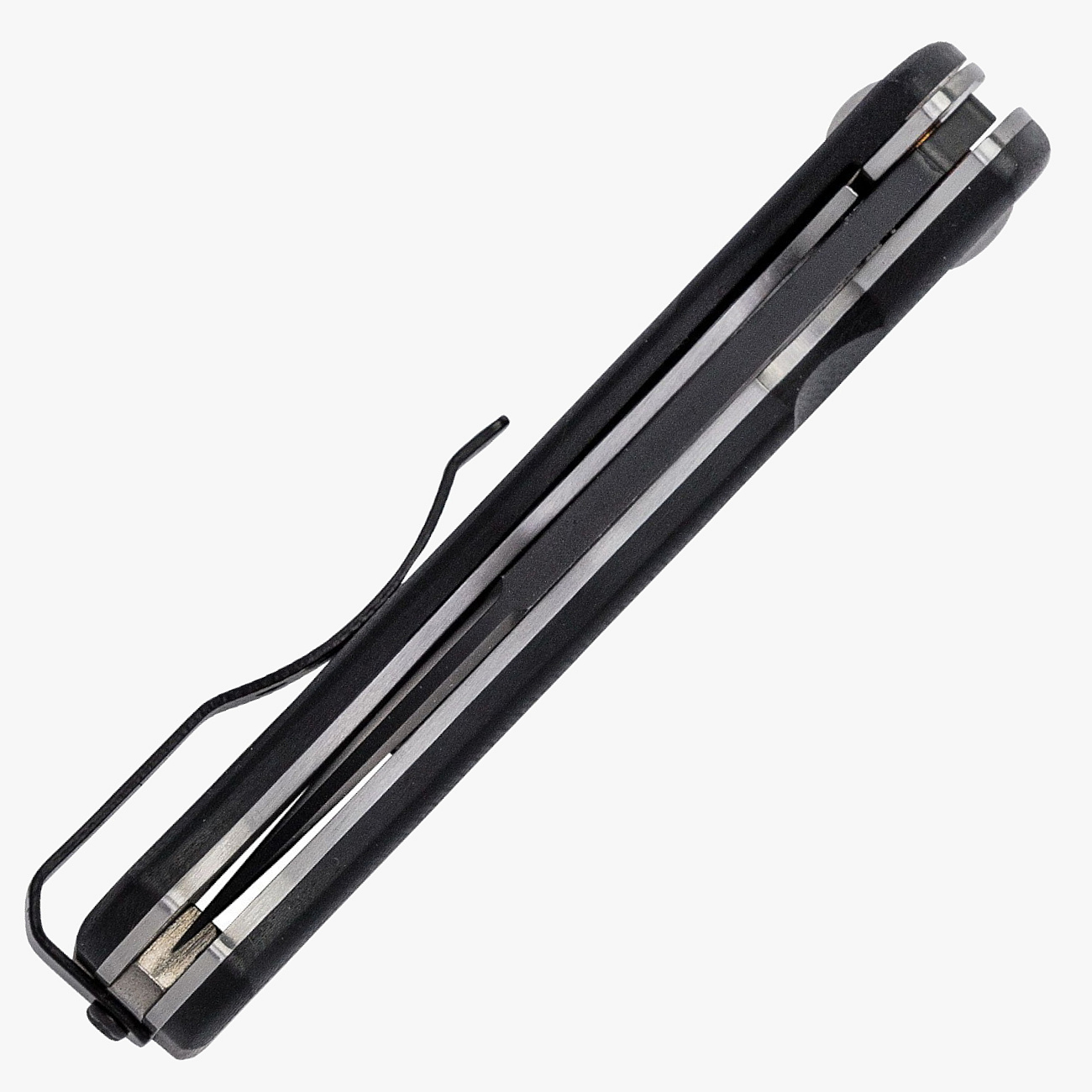 Robustní zavírací nůž s odolnou a ergonomicky dobře propracovanou konstrukcí. Čepel je z dobré nástrojové ocele D2 s nepravým ostřím na hřbetu a černou povrchovou úpravou.