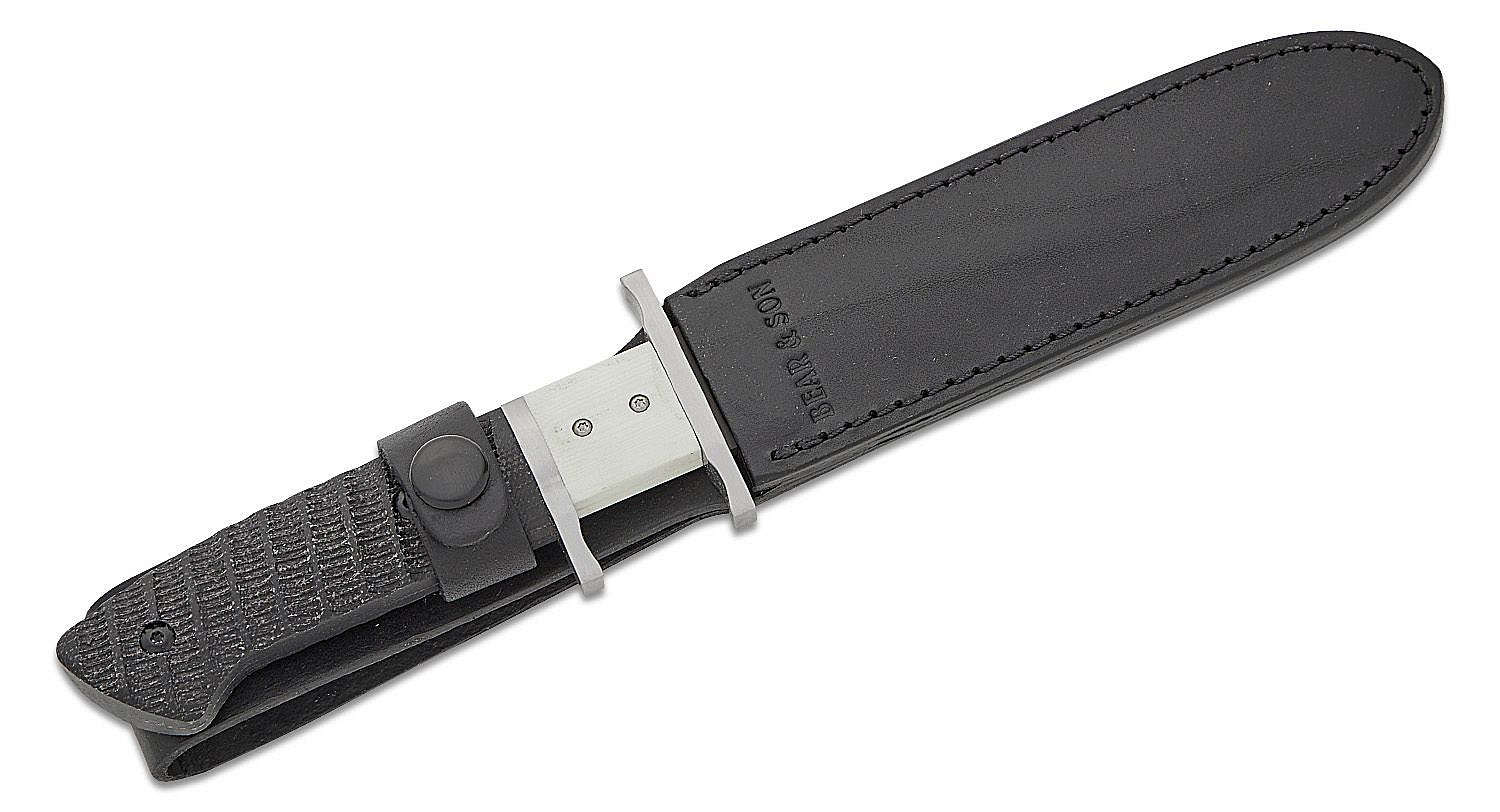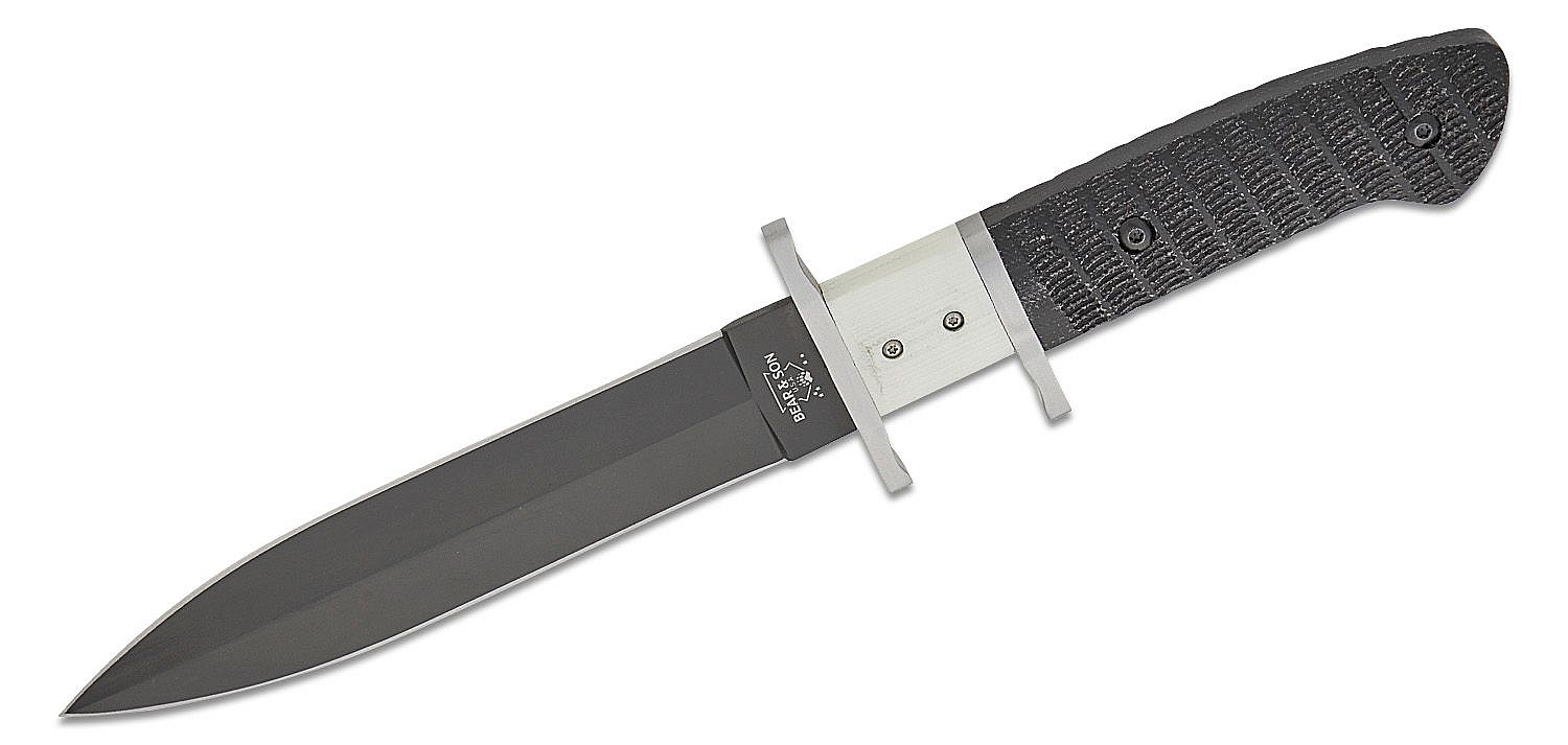 Krásně zpracovaný bojový nůž s micartovou rukojetí a s čepelí ve tvaru oboustranně broušené dýky z odolné nástrojové ocele D2. Nůž je příjemně lehký, má vynikající ergonomii s velmi příjemným úchopem a je dodáván v krásném černém hovězinovém pouzdru.