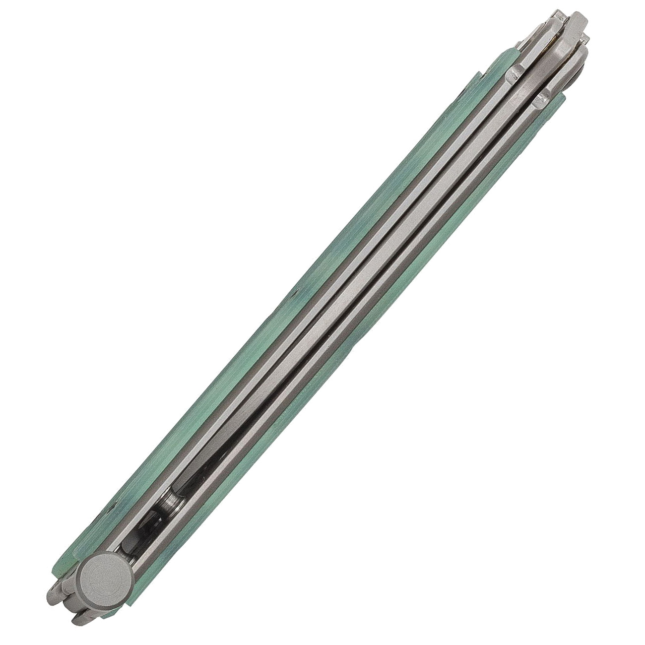 Krásný motýlek s netradičním výbrusem ostří a čepelí z vynikající ocele CPM-154CM. Konstrukce je skvěle sestavená a zcela bez vůlí pro maximální požitek z užívání. Navíc ramena zdobí krásné střenky z nebarveného polymeru G10, který vyniká transparentní, lehce namodralou barvou.