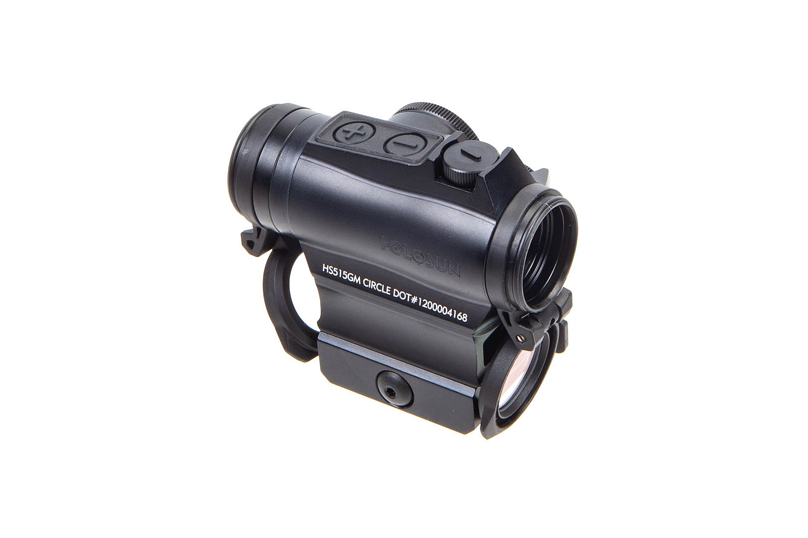 Kolimátor HS515GM patří do vyšší třídy kolimátorů HOLOSUN. Tělo vyrobeno z odolnější slititiny hliníku řadí kolimátor do třídy military grade. Kolimátor disponuje přepínatelnou osnovou bod 2 MOA nebo bod 2 MOA s obrazcem 65 MOA. Rychlo upínací montáž se skládá z nízké montáže a vložené odaptéru pro zvýšení. Pruhledové odklopné flip-up krytky zajístí pohotovou střelbu. Součástí dodávky je killflash. Bez paralaxy s neomezeným očním reliéfem.