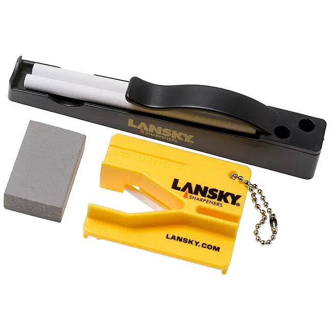 Skvělá a cenově dostupná sada pro rychlé ostření snad všech ostrých nástrojů. Sada obsahuje protahovací keramický brousek mini, který můžete nosit na klíčích nebo připnutý na zavazadlu a snadno díky němu nabrousíte nože s hladkou čepelí všeho druhu a sekery. Dále v balení naleznete eraser block, což je kostka ze specielní hmoty pro čištění jemných brusných kamenů od ocelového prachu a šponek uchycených při broušení nožů. Nejdůležitější je ale brousek C-Clip s keramickými pruty, který vám v kapse nezabere více místa než pero nebo zavírací nůž a při trošce cviku s ním nabrousíte jakékoliv ostří, od hladkých či zubatých nožů přes sekery a dláta až po nůžky a zahradní nářadí. Jemné keramické kameny se hodí k doostření a vyleštění ostří, k opravě zubů a deformací ostří však bude vhodnější nějaký hrubší brusný kámen.