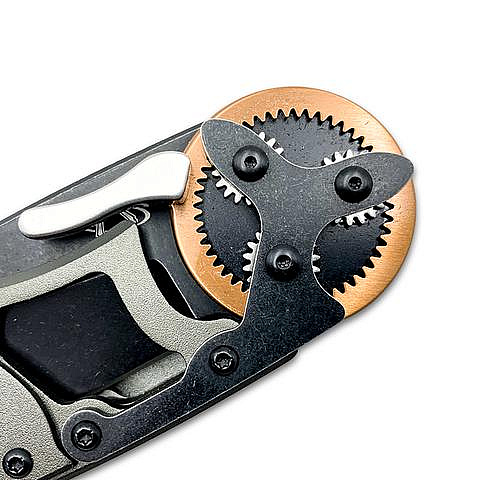 Nůž s neotřelým a nápaditým systémem otevírání pomocí ozubeného převodu z dílny G&G Hawkových...