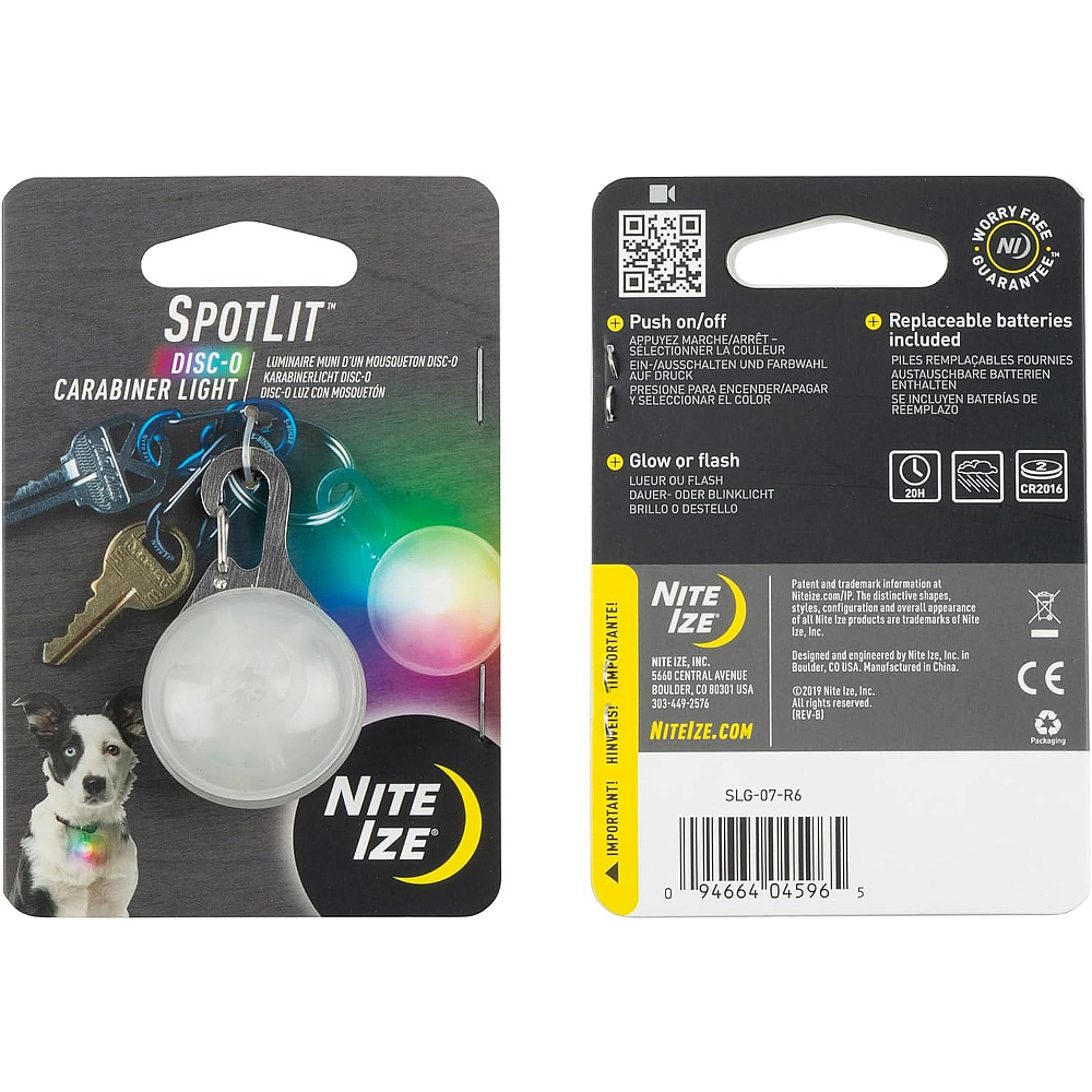 Díky Spotlit budou všechny večerní procházky jednodušší a bezpečnější. Připíná se na D-ring obojku Vašich mazlíčků pomocí karabiny. Stisknutím tlačítka se světélko aktivuje/vypíná, ale také mění svit ze záře na režim krátkých záblesků.