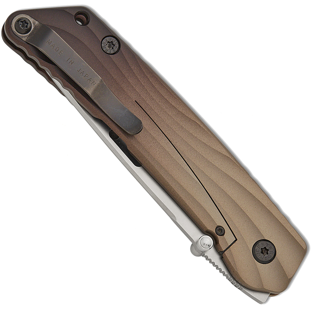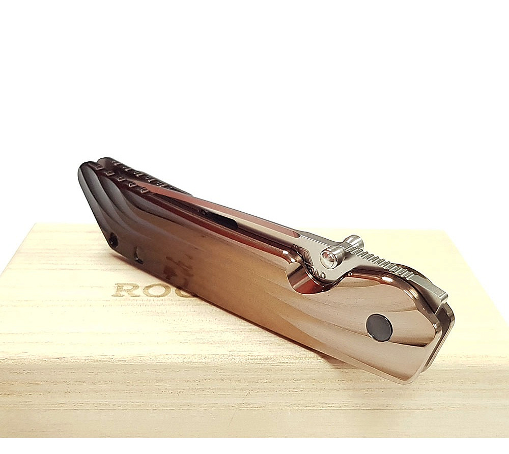 - rám nože z titanové slitiny s úpravou povrchu Matte Antigue Bronze