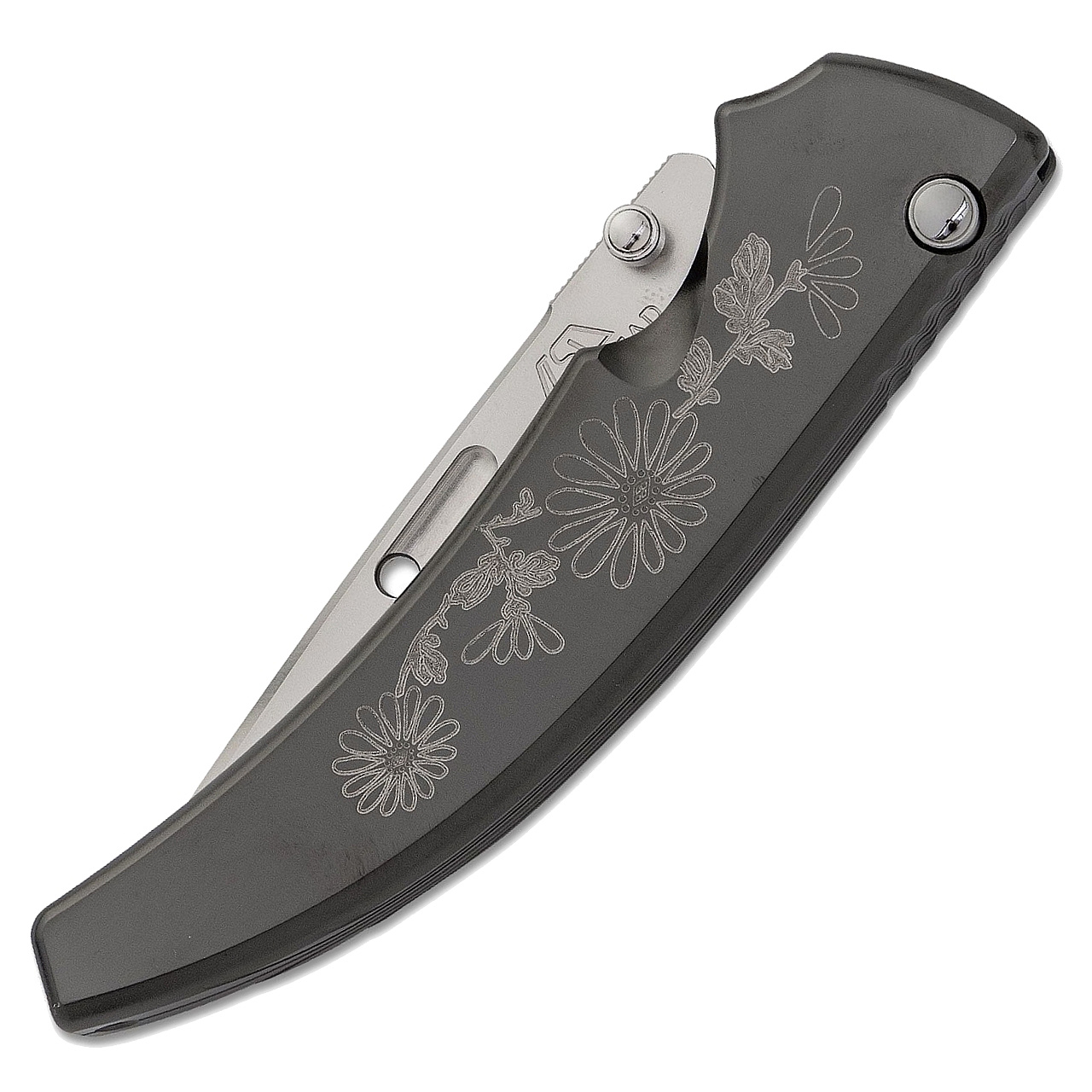 • Materiál střenky: Titanová slitina s rytinami Kiku (Japonská Chrisantéma)