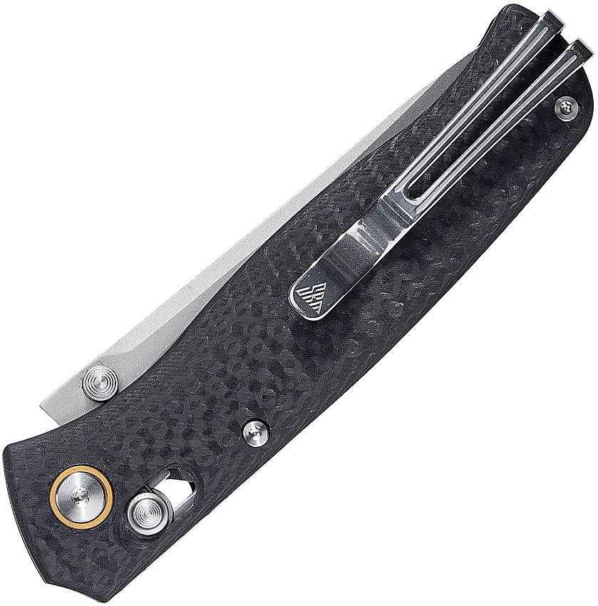 Opravdu vyjímečně lehoučký zavírací nůž pro každodenní skryté nošení s neobvyklou čepelí. Ta je tvořena laminátem dvou různých ocelí a je štíhlá s vysokým klínem, takže zaručuje nekompromisní řezivost. Za nízkou hmotnost nože zodpovídají střenky rukojeti, které jsou z velmi pevného a lehkého uhlíkového vlákna.