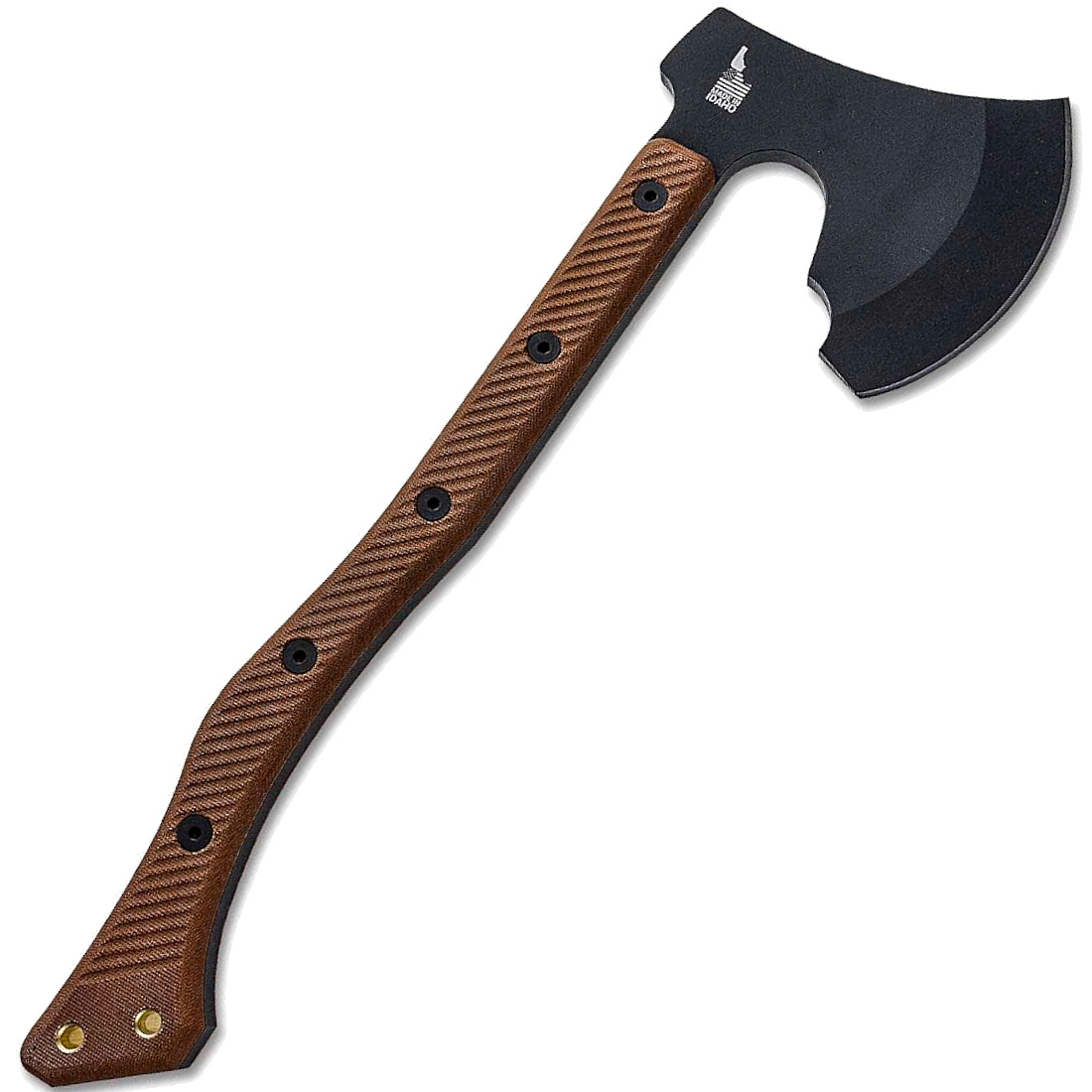 Prvotřídní campingová sekera, kterou ocení zejména nároční uživatelé, kteří táboří často a pravidelně využívají sekeru k budování ohnišť a přístřešků. Sekera má konstrukci fulltang a je vyrobena z prvotřídní uhlíkaté ocele 1075. Její ergonomie spolu s hrubýma střenkama z micarty propůjčují sekeře velkou pádnost, ohromný výkon při sekání a hlavně pohodlný a jistý úchop.