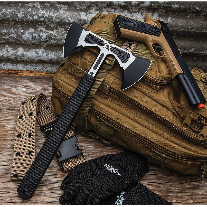 Bojová oboustranná sekera vyrobena v moderním military stylu. Oba břity jsou plně broušené a tak i díky konstrukci fulltang je ideální pro vrháni a použití, jako tomahawku.